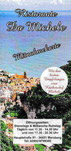 Da Michele Öffnungszeiten Täglich von 11.30 bis 14.30 Uhrund von 17.30 bis 22.30 UhrDienstag und Mittwoch Ruhetag